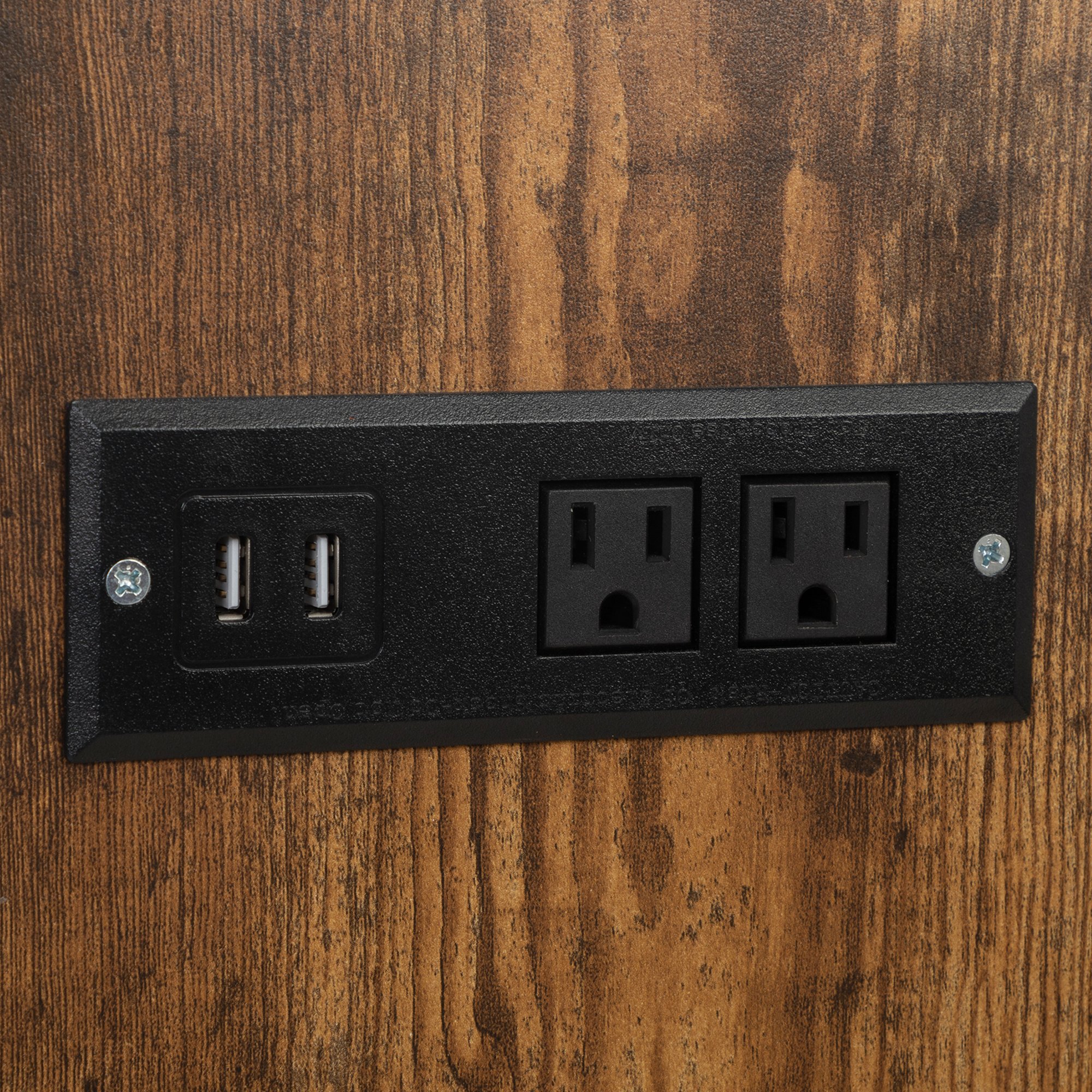 Beauty Salon Trolley, Hair-dressing Tool Storage Cart with Hair Dryer Holders and Power Strip, Rustic Brown