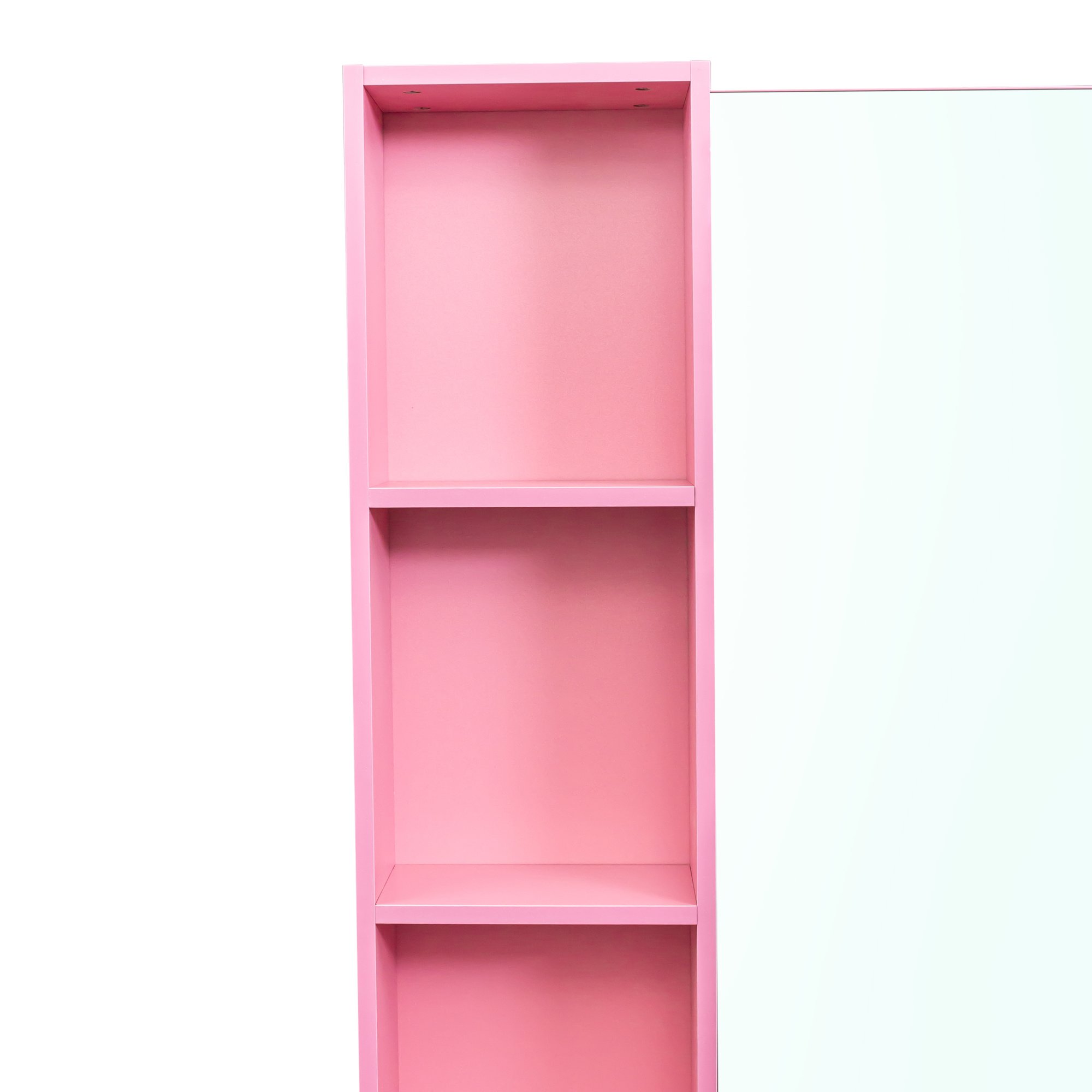 Salon Station Barber Stations Styling Station Barber Beauty Spa Salon Equipment Set with MirrorElegant Design:Presented in classic pink surface, this product fits perfectly in just about any salon.Note the unit is anchored to the wall for stability.It provides large capacity while effectively make room for other furnitures or the aisle in your salon.The station has 3-storage shelf, mid cabinet with 2 drawers, and one large bottom cabinet.You can organize your items and decorate your room with your creativity. One of the drawers is lockable to provide a secure storage for your valuables. Once properly installed, the drawer slide smoothly and doors close quietly.With concise design, full of elegance, simple and fashion. So this station with ample storage is perfect for professional use in beauty or hair salon, also can be used as a dressing table for home etc